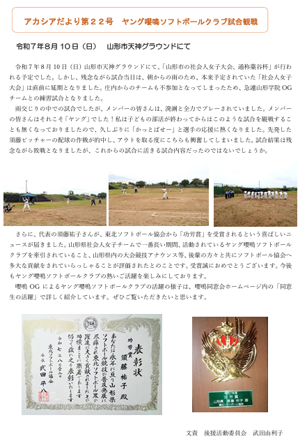 アカシアだより第22号(ヤング嚶鳴ソフトボールクラブ試合観戦)